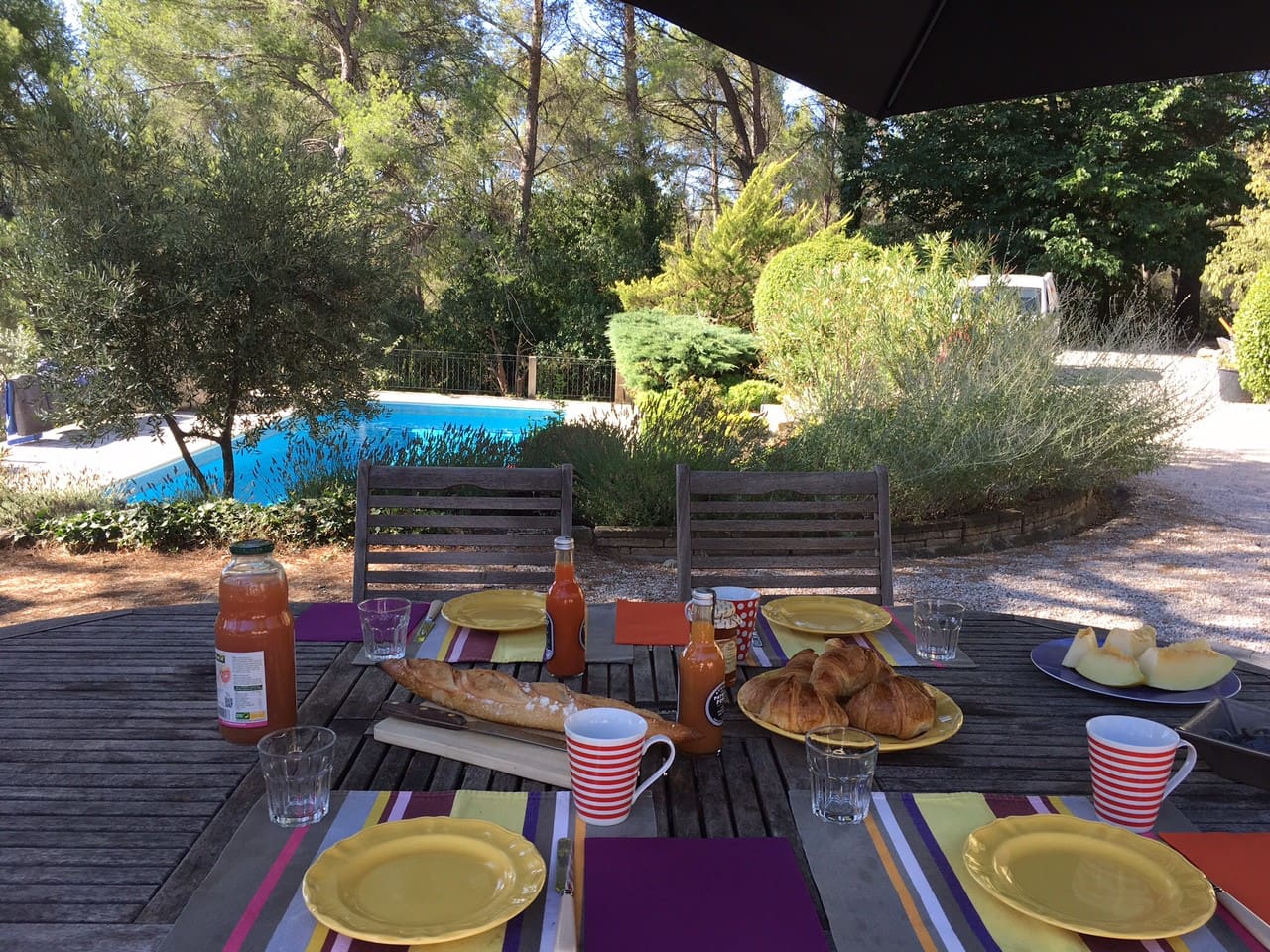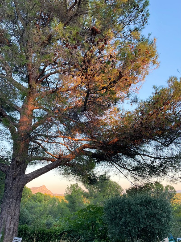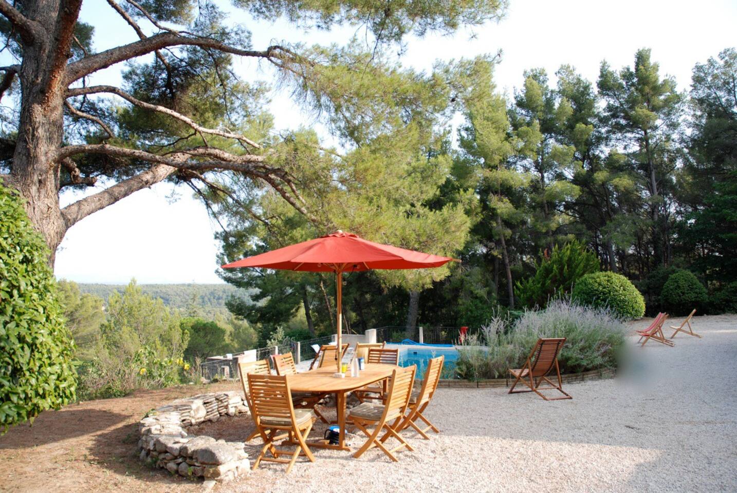 Vous avez une magnifique vue sur la pinède et la Montagne sainte Victoire. 1 hectare de jardin tout autour de la maison où se mêlent les essences méditerranéennes : oliviers, lauriers roses et blancs, arbousiers, lavandes, pins. Et en bonus, l’été vous serez bercés par le chant des cigales.